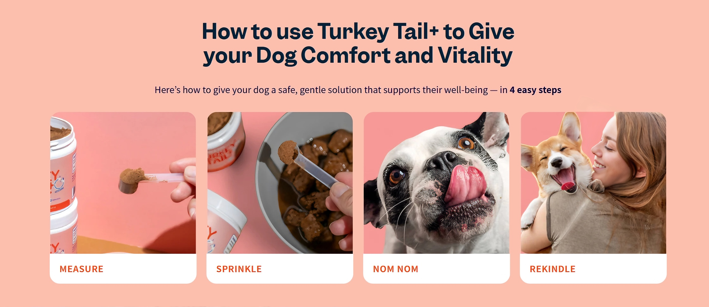 We know how challenging picky eaters can be! Turkey Tail+ has a flavor dogs love (bacon!), so it easily mixes into their food. Many customers report that even their fussiest pups take to it right away.